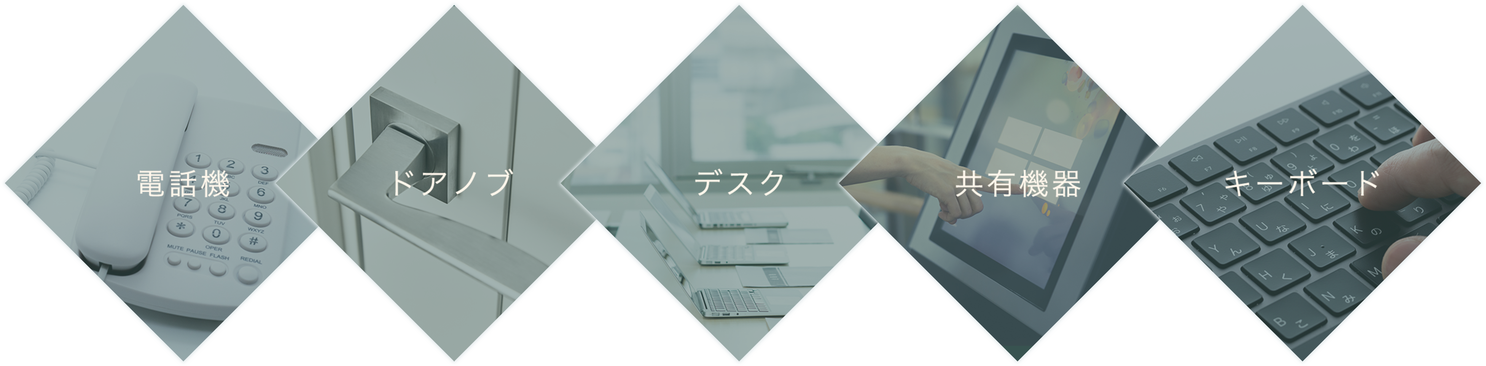 - 噴霧された面を清掃や消毒をしても効力は衰えません。一定期間効果が持続します。※施設により持続期間は異なります。